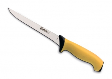Клинок ножа 2207 TR (yellow) тонкий, узкий и гибкий, благодаря чему процесс нарезания мяса или рыбы легко контролируется, что, в свою очередь, позволяет нарезать филе очень тонкими кусочками. Сталь EN 1.4110 (X55CrMo14) прекрасно держит заточку в течении долгого срока и обладает высокой устойчивостью к коррозии.